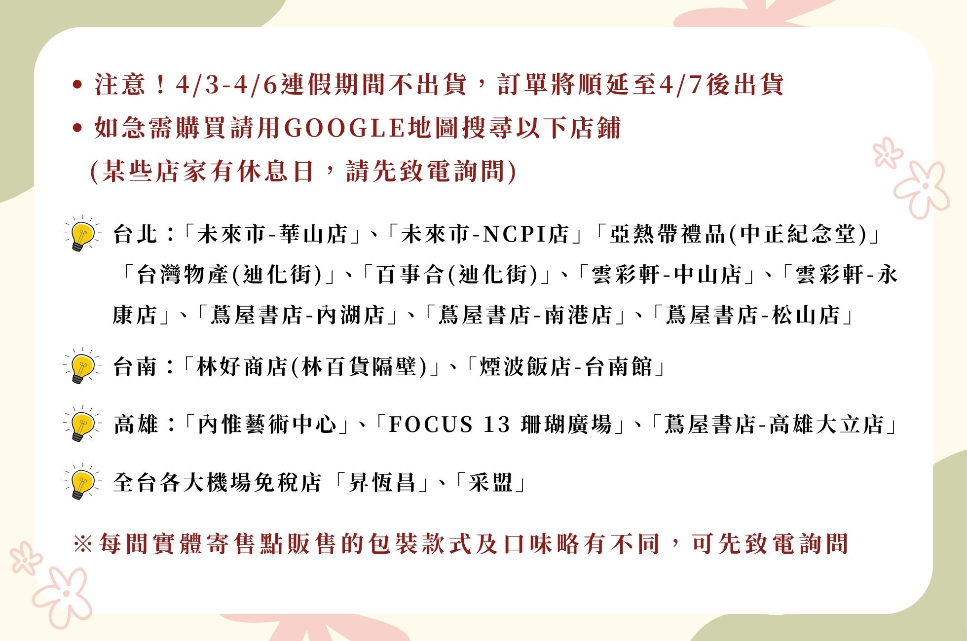 2/11-2/22春節休假不出貨,期間訂單將延至2/23後陸續寄出